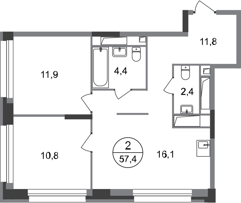 2-ком, 57,4 кв.м., 17/20эт.